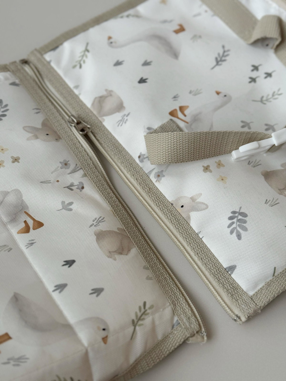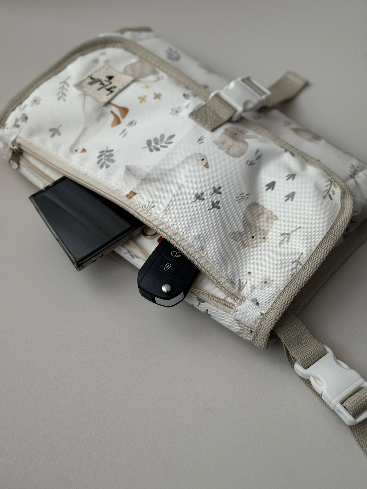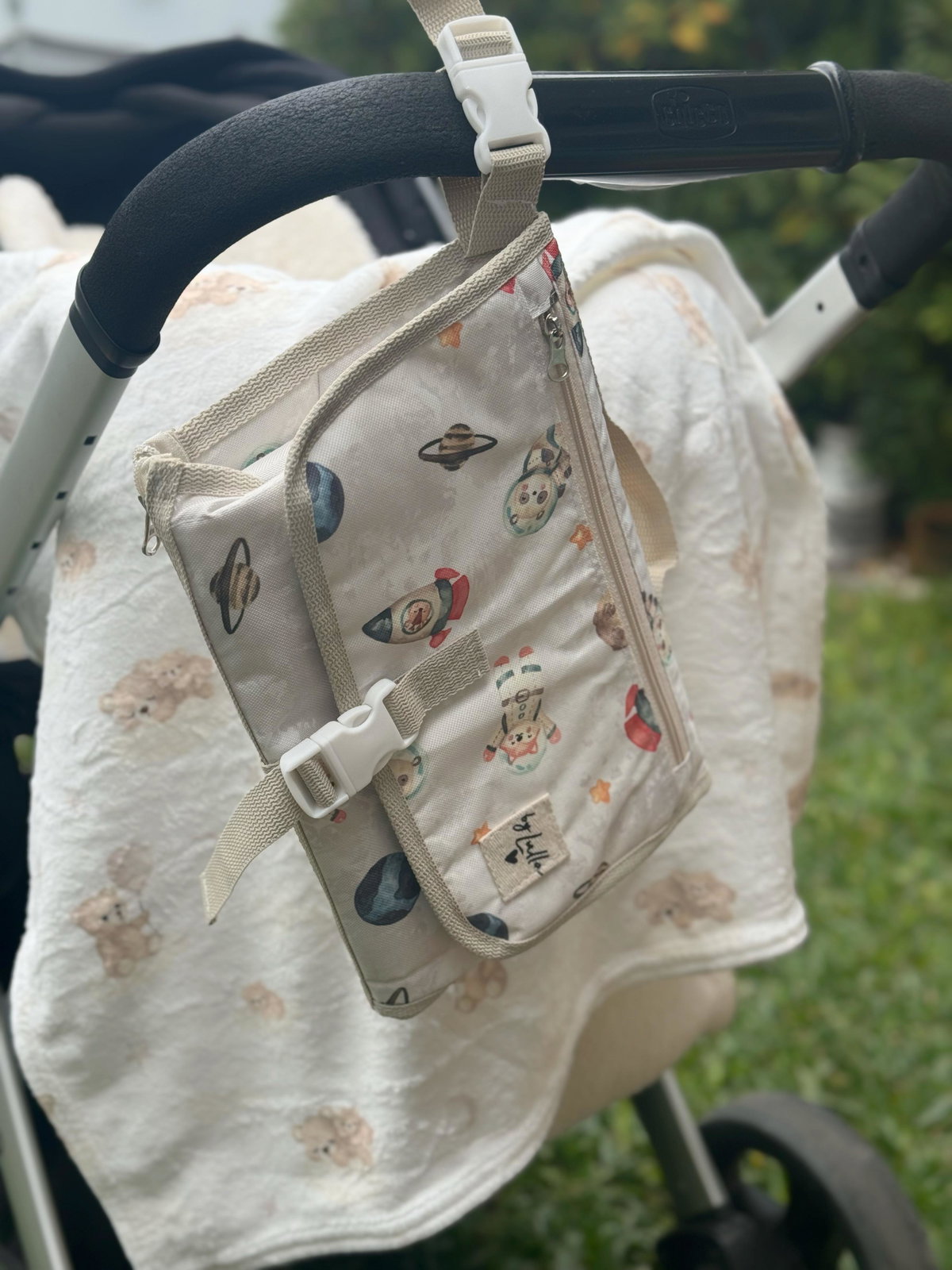 El cambiador incluye un cierre que permite separarlo fácilmente del bolso principal, proporcionando versatilidad y comodidad. Además, viene con un gancho integrado para colgarlo del cochecito, manteniendo todo al alcance de tu mano durante los paseos.